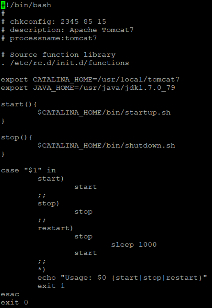 - # vi /etc/init.d/tomcat.serivce 또는 vi /etc/rc.d/init.d/tomcat.service