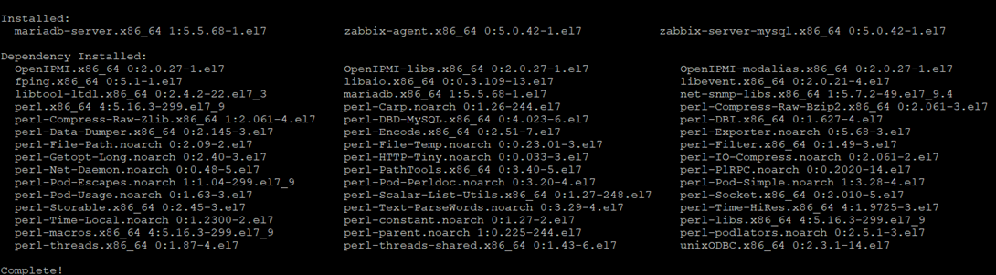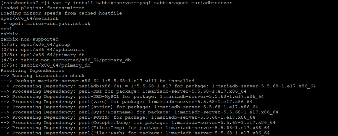 # yum -y install zabbix-server-mysql zabbix-agent mariadb-server
