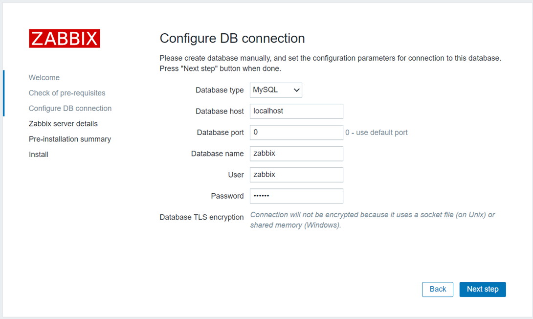 # zcat /usr/share/doc/zabbix-server-mysql*/create.sql.gz | mysql -uzabbix -p zabbix