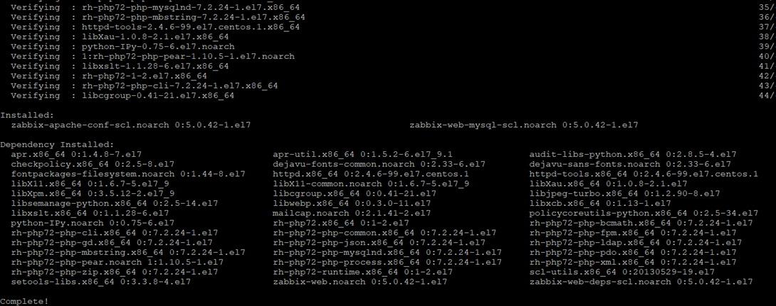 # yum -y install zabbix-web-mysql-scl zabbix-apache-conf-scl