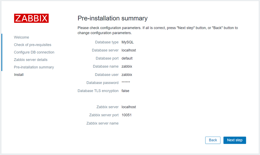 DB 연결 값 확인 및 비밀번호 입력 후 Next step