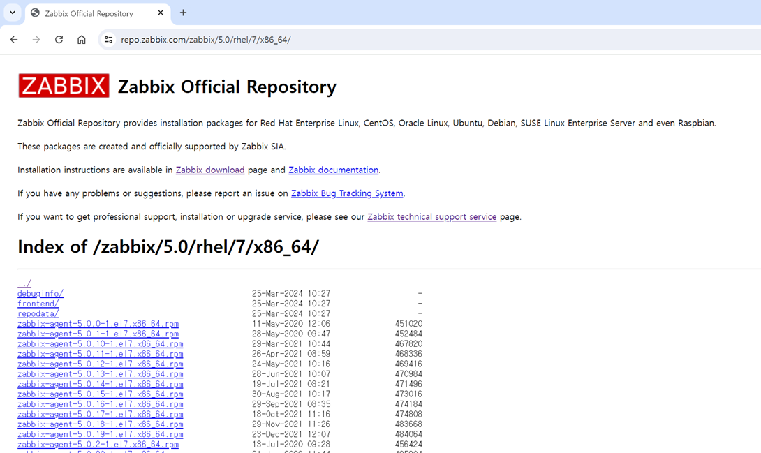 ② zabbix package 설치(URL : http://repo.zabbix.com/zabbix 최신 설치 버전 경로 확인 후 설치)