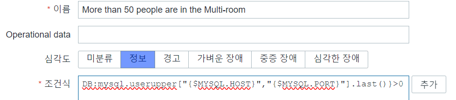 이렇게 설정하면 사용자가 50명 이상일 때 Zabbix가 자동으로 알림을 보내도록 설정됩니다.